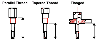 For further recommendations on the use of these materials, please refer to Technical Data Sheet JAG/TWM Instrument Connection :- Instrument connections may be male or female, with API, NPT, BSP, or other thread forms. Process Connection :- Connection to the pipe or vessel may be by means of thread, flange or weld. Threaded :- Using standard tapered or parallel pipe threads for simplicity and low cost is popular, generally for low pressure applications. Standard threads are NPT, BSP(Pl), BSP(Tr) and API. The thread size is dependent on the application, but 1/2" ,3/4" and 1" are common. Flanged Connection :- All sizes and pressure ratings are available to DIN, BS, ANSI/ASME and JIS or other standards. Flanged connections are now the petrochemical standard for all applications. Weld-In Connection :- Weld in thermowells are normally used where process pressure and velocities are too great for flanged and threaded, or where long term inexpensive connections are required. Immersion Profile :- The profile should take account of fluid flow characteristics, strength of thermowell and immersion length.